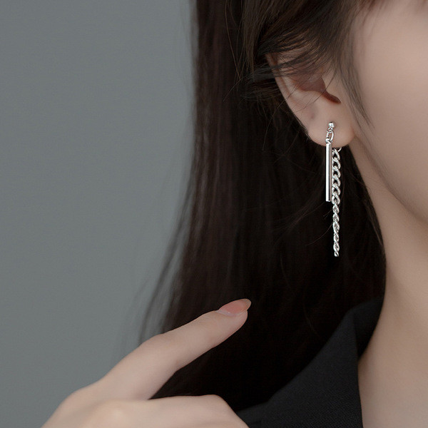 s925 sterling silver simple string cute silver chain short earrings