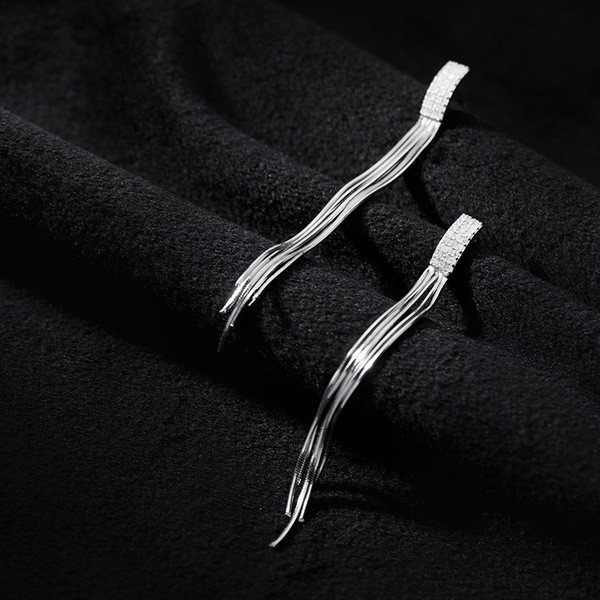 s925 sterling silver simple rhinestone stars string chic long clipon earrings