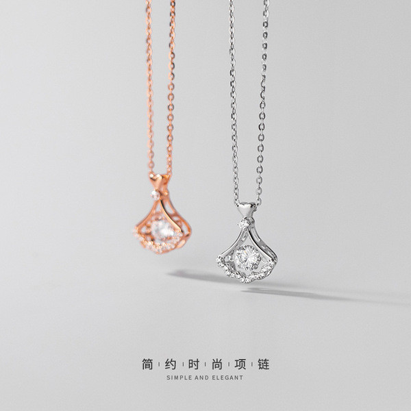 s925 sterling silver chic gold fanshape necklace