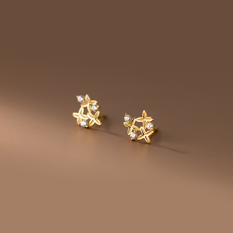 s925 sterling silver vintage fashion braided gold hollowed earrings
