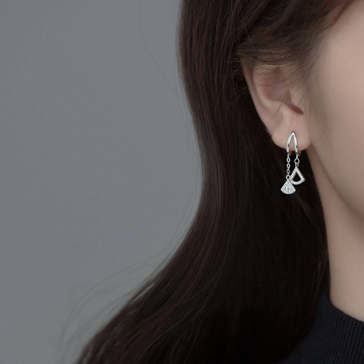 s925 sterling silver simple rhinestone square tassel fashion chic geometric earrings