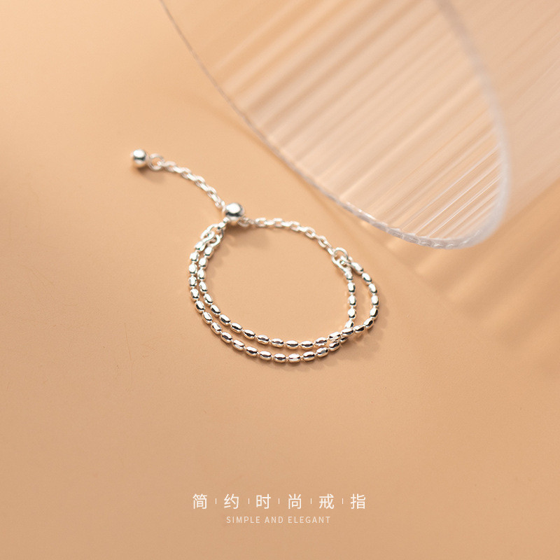 s925 sterling silver simple chain hollowed adjustable ring